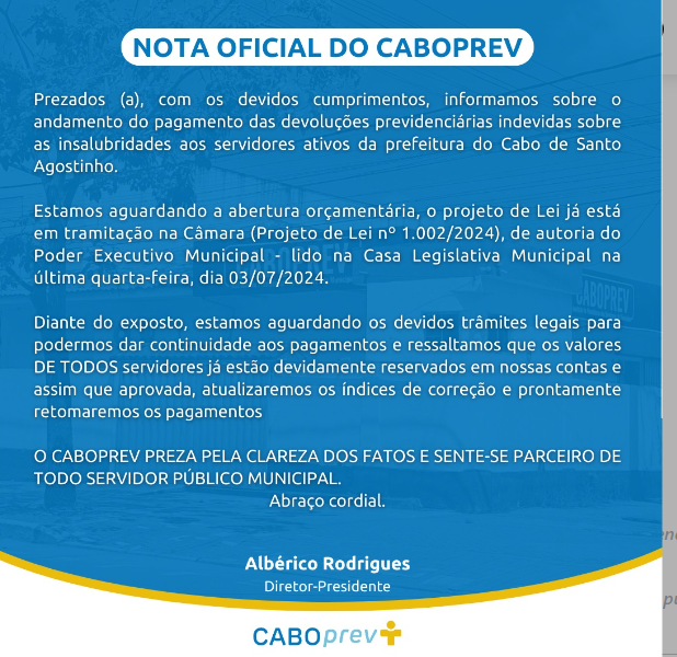 Nota Oficial do CABOPREV